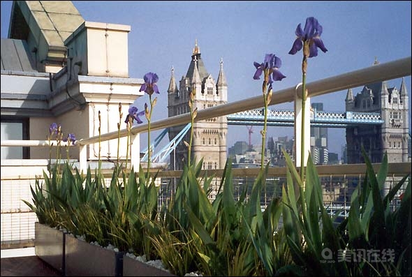 butlers wharf屋頂花園位于倫敦西北部,占地75平方米,庭院的北方朝向倫敦塔橋,白色的小鵝卵石裝飾在鳶尾和日本莎中間。整個庭院將泰晤士河、塔橋和金絲雀碼頭作為背景。