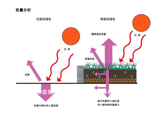 從建筑角度來看,屋頂綠化有利于改善建筑的外觀,遮蓋影響視覺效果的屋頂或墻體;有利于緩解建筑物熱脹冷縮而導(dǎo)致的屋頂裂紋引起的損害.以及防水層的老化和滲漏;有效地降低屋頂表面的溫度,從而達(dá)到節(jié)能的目的:發(fā)生火災(zāi)時,還可以保護(hù)建筑物和燃燒延遲的作用。