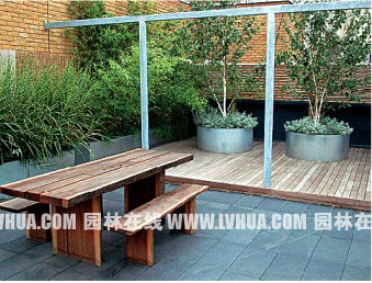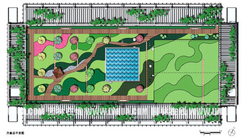 原有建筑及廣場和諧、對稱的設(shè)計布局.本次屋頂綠化設(shè)計以西方現(xiàn)代園林手法來著重表現(xiàn),強(qiáng)調(diào)結(jié)構(gòu)及斑塊效果。