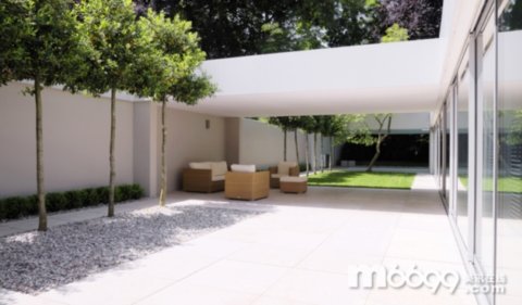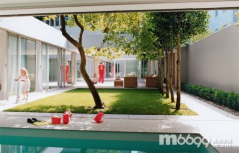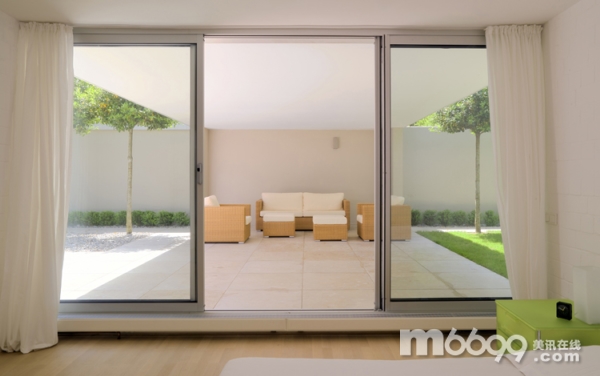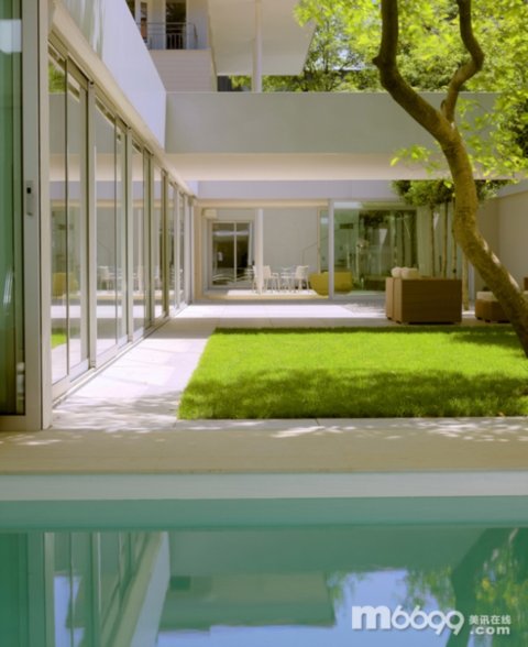 這座現(xiàn)代家庭住宅由建筑師MaxBrunner設(shè)計(jì),建筑師仔細(xì)地考慮了每個(gè)細(xì)節(jié),讓住宅能給人帶來(lái)一種舒適的室內(nèi)外生活。住宅和幾個(gè)庭院、露臺(tái)相連。樓層高的窗戶(hù)和滑門(mén)能讓自然光線(xiàn)照入到整個(gè)室內(nèi),同時(shí)也為去往室外和泳池提供了更簡(jiǎn)捷的通道。雖然天花板的高度只有2.45米,窗戶(hù)和白色的墻壁讓住宅看起來(lái)很舒適。用餐區(qū)位于住宅中間,和兩個(gè)庭院和一個(gè)帶頂?shù)钠脚_(tái)相連。所有的房間和戶(hù)外空間都按最簡(jiǎn)抽象主義風(fēng)格設(shè)計(jì)。另外,綠色屋頂?shù)脑O(shè)計(jì)也給人帶來(lái)一處不錯(cuò)的地方。