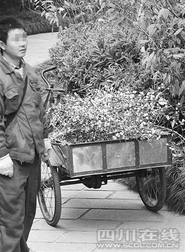 新鮮清香的臘梅被園林工人剪掉,放進(jìn)三輪車,是不是轉(zhuǎn)手賣給了花販子?24日,網(wǎng)友"天堂上下"在天涯論壇上發(fā)帖子,他懷疑成都浣花溪公園里有"采花大盜",并將一園林工人的照片上傳,引來眾多網(wǎng)友跟帖。昨日下午,記者來到浣花溪公園調(diào)查。