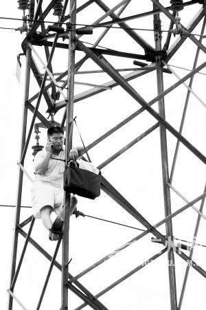 8月6日上午11點,杭州市艮山東路汽車東站附近,消防車、警車、眾多的群眾,導致這一帶交通十分擁擠。 原因很簡單,大家的視線都集中在了彭埠章家壩社區旁邊的高壓電塔上。 一名30多歲的男子,就在電塔上,離地約30米,十分危險。 此時,他已上去了兩個多小時,消防和110民警早已趕到現場,鋪好了安全氣墊,有關人員正在積極勸導這名“想不開”的男子。盡管這樣,爬塔男子絲毫沒要下來的意思,不停地打著手機,在高塔上轉來轉去。 圍觀的人群中,時不時發出唏噓聲。 “他爬之前,剪了工地上的電線!” 高壓電塔就在運河邊,位于一市政綠化工地的旁邊。 很多工友,連中飯也顧不上吃,都關注著高塔上的男子安危。“他以前也在這個工地上干,因為和大包工頭有經濟上的糾紛,從去年就開始鬧了,一直沒辦法解決。沒想到他會做出那么危險的事!币晃淮┘t色衣服的工友擔心地說。 相熟的老鄉介紹,這個男子姓王,32歲,紹興人,是一個小包工頭,因所要其承包的運河沿線園林綠化工程款項而與某市政園林公司發生經濟糾紛。 白師傅,目前在工地負責澆筑主體設備。他說,上午8點半左右,男子爬塔前,就情緒激動,背個黑包,跑進跑出工地很多次。 “上午9點不到,我們正在澆混凝土,突然,沒電了,機器動不了了!贝蠡锇l現情況不對,趕緊跑向配電箱,一檢查,才發現電線被人剪斷了。 為了重新接上線路,工程為此耽擱了大半個小時!坝惺裁词,大家好好解決,破壞公用設備,是不理智的!笔潞,白師傅他們才了解到,就是爬塔的王某干的,覺得有點氣憤。 扔東西,阻撓消防特勤施救 11點左右,見王某死活不肯下來,兩名消防特勤人員準備妥當即爬塔救人。 可沒爬幾步,就沒法繼續了。 原來,王某發現了往上爬的特勤人員,極其不配合,開始向下扔東西,阻撓人工施救。 “你們不要上來,要下來,我自己會下來!……”他邊仍東西,邊大聲呼叫。 接到短信,自己爬了下來 在消防特勤施救的同時,110民警也沒閑著,初步了解了情況后,他們先將某市政園林公司的負責人叫了過來。 “我們剛趕到時,初次和他對話,他就聲稱拿不到錢,就不下來。”彭埠派出所周教導員介紹,通過電話,民警和男子經過了數次溝通和勸導,他態度都很強硬。 人命關天,民警只能做市政園林公司負責人的思想工作。“你們之間如果真有沒結清賬,還是趕緊給他吧,否則后果不堪設想!蹦呈姓䦂@林公司的負責人稍作考慮后,安排人員去銀行打款。 12點05分,爬塔的男子接了一條短信后,開始慢慢往下爬。 眾人都松了口氣。 一分鐘后,王某落地,迅速被民警帶上了警車。 “我們不清楚,最后他為什么會答應爬下來,但發現了手機里的短信,是他老婆發過來的,錢進賬了。” 周教導員表示,王某被帶回派出所內后,會進一步調查,并將依照相關法律規定對其擾亂公共秩序的行為做出行政拘留的處罰。