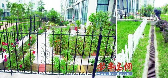 膠州市金色家園小區(qū)內(nèi)很多居民向記者反映,該小區(qū)內(nèi)開發(fā)商原搭建的私家花園,現(xiàn)在卻被居民毀壞得非常嚴(yán)重 。一些居民將原始的木制柵欄拆除,然后重新圈占,小區(qū)內(nèi)的公共綠地被嚴(yán)重破壞。8月9日上午,記者聞訊趕到該小區(qū)時看到,在小區(qū)多棟居民樓周圍,一些原本用木柵欄圈建的小花園,現(xiàn)在已經(jīng)被毀壞,居民們直接在原有的花園面積上向外擴(kuò)建,有的業(yè)主直接用鐵藝欄桿向外擴(kuò)出1米多遠(yuǎn)。為了達(dá)到多占綠地的目的,許多業(yè)主還運(yùn)來水泥、沙子和磚頭建圍墻,有的甚至把排水口都堵住了。