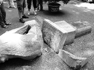 公安部門已介入調查 “心疼!金陵第一園(瞻園)門前的石獅被車撞碎了!它們原本是成對鎮守西花園的,現在只剩下一只孤零零立在那里,可惜了!”昨天,西祠胡同冒出的瞻園石獅被撞碎的帖子引起了網友們的關注。 昨天下午,記者來到瞻園門口,發現原本瞻園正大門門口的那對石獅,如今確實只剩一只,另一邊石獅的位置被幾個盆景取代。 400歲石獅被撞倒在地 “8月12日上午,一輛裝了柏油的城市工程車在瞻園大門前倒車,當時,大家都沒太在意。 只聽‘啪’一聲脆響,就看到大門口左邊的石獅倒在地上。石獅嘴巴掉了一大塊,尾巴也掉了一大塊,基座也和獅身分了家……”瞻園是當年朱元璋賜給徐達的府邸,全國重點文保單位,也是金陵第一園,目前瞻園的擴建工程剛完畢不久。 在這個“喜”事還沒來得及慶賀的節骨眼上,鎮守大門的石獅被撞碎了一只。提起“石獅”被撞的事,瞻園的負責人不愿意多說。但一位目擊者告訴記者,當時是城市工程車司機正在倒車,由于沒注意到瞻園門前的石獅,所以不小心撞到了它,導致石獅摔倒在地,還嚴重“毀容”,嘴巴鼻子都掉了。 據南京市文物專家介紹,被撞倒的石獅大概400余歲,在南京,像它這般年齡,這么有氣勢、雕刻這么精致的石獅還真不多,已經相當珍貴了。“徐達的王府門前一直有一對石獅給他鎮守府邸,規模比現在的稍微小一些。文革時期,這對石獅因為‘破四舊’不知所終。上世紀70年代,瞻園作為南京的第一園林要對外開放,沒有了鎮宅的石獅怎么辦?上世紀80年代,就把升州路的一個大戶人家門口的石獅搬了過來! 文物專家說,這對石獅雖然是從升州路搬遷過來的,但它和瞻園差不多是同時代的,也是明代的石獅,當年把這對石獅放在瞻園門口就考慮到了“匹配”的問題,就連朝天宮大門前的那對石獅年齡都沒有瞻園的這對悠久,“朝天宮的石獅是清代的,比瞻園的石獅晚! 公安部門已介入調查 雖然這對石獅是后期“遷居”瞻園大門前,但文物專家們認為,它們蹲守瞻園已近30年了,是瞻園的一部分。而肇事司機雖然不是故意的,但是已經損壞了文物,“在文物法里,破壞文物情節嚴重的要判刑!睋私,目前公安部門已經介入調查此事了,一位文物專家說,肇事司機究竟會怎么處理還要看公安部門的意見。 至于已經破損的石獅,文物專家說,目前的文物修復技術可以讓那些碎片回到原位,“對它們進行修復,并進行‘整容’,但修復以后,還是會留下痕跡的,想和原來一模一樣不太可能!