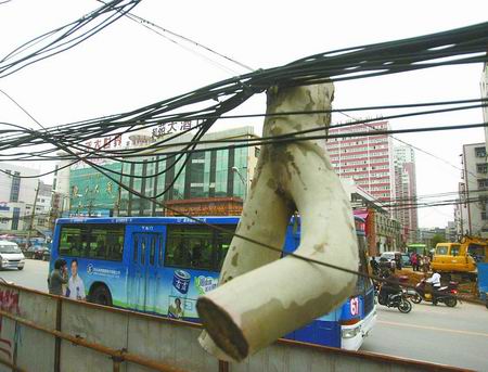 樹挪走了,幾段樹干卻吊在電線上,最大的有半米長、碗口般粗,懸在文化路與東風路交叉口西側半空中的“達摩克利斯劍”(如圖),讓過往行人很揪心。 “這么大的樹干在頭頂懸著,看著就擔心,生怕啥時會掉下來傷人。”市民吳女士說,她注意這些樹干已有多日,一直懸在電線上,搖搖欲墜,存在安全隱患。 她介紹說,今年8月初,該交叉口西側的百余棵法桐因道路施工被移走,不知為啥,幾段樹干卻“留”在電線堆里,“到了大風天氣,這些樹干很容易掉下來傷人,再說老這么懸著,對線纜也不好”。 為何移樹后卻在線纜上留下樹干?記者發現,這8段長短粗細不一的樹干,有的已將鋼絞線包裹,有的被釘上釘子,已是樹線“難分”。其中,路北側一段垂得最低的樹干長約半米,直徑20多厘米,過往行人和路邊商戶都覺得危險。 金水綠化管理隊梅科長稱,移樹時,他們交代過工人要好好處理,因為有些地方鋼絞線已經長進樹干,又怕損壞線纜,一時難以處理才留下這些樹干,他表示這樣確實不太安全,將盡快派人想辦法清理掉。 新華網河南頻道 9月10日訊 大河網-大河報報道: