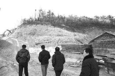 工作人員表示:“就現在的情形看,一旦下雨,的確存在山體滑坡的危險。 ” 首席攝影記者范佳德 經過清理,樹被鋸斷的部位露出較新的橫斷面。 近日,多位讀者反映,有施工隊趁夜在大連市中山區捷山街附近一公園內開山毀林,造成約百米的山體被毀,樹木被伐,留下安全隱患。昨日,記者隨中山區行政執法局葵英中隊、葵英街道城建科到現場進行實地調查。執法部門表示,如果施工方涉嫌超越審批界限施工,將按照相關規定對其進行處罰。 市民反映 20多天來,有施工隊趁夜開山毀林 12月11日,住在解放路附近的市民陳先生向記者反映,小區附近有一座依山而建的捷山公園,生態環境良好,但最近一個月來,卻總有施工隊趁夜在公園的東北側開山毀林,“連續多天傍晚,我在山頂看到,有大型機械在山腳下一步步毀壞山體,而山上的樹木則被用電鋸鋸斷。天亮后,施工人員還將樹根用土掩埋,好像是有意掩蓋。 ” 陳先生是一位環保志愿者,他對公園山林被毀感到非常可惜。 12月15日,陳先生再次向記者反映說,他已經連續觀察了20多天,也曾向相關部門反映過此事,但施工方一直沒有停工的意思。“山體在不斷被大型機械毀壞,我們更擔心存在安全隱患。 ”陳先生形容說,公園在一步步被“蠶食”。 現場調查 碗口粗的槐樹被鋸斷,樹樁被土掩蓋 12日傍晚,記者來到捷山公園東北部的半山腰,山下有一處新小區正在施工,小區的建設已接近尾聲,緊挨著一棟新樓房的山體已經被大型機械挖成與地面垂直的陡壁。在陡壁上方的樹林內,還放著磚塊等建筑材料,而在緊挨陡壁的山坡上,一些碗口粗的槐樹被鋸斷,一些樹枝散落在山坡上。 陳先生指著被“啃”得裸露出沙石的山體告訴記者,這段被毀的山林長度約為100米左右。陳先生在草叢中找到幾棵被電鋸鋸斷的樹樁,樹樁被厚厚的土覆蓋著,陳先生拿出了一把刷子,清除掉樹樁上的土。此時記者看到,樹木被鋸斷的部位露出較新的橫斷面。陳先生說:“這些樹木都是近期被鋸斷的,我通過觀察總結出,他們是先砍一些樹,然后再向山里挖一點。 ”他懷疑樹樁是被人為掩蓋的。 執法部門 若涉嫌超界施工,將對施工方進行處罰 昨日上午,記者將了解的情況向中山區園林管理處作了反映,一位工作人員表示:“之前的確接到過市民舉報,我們也到現場了解過情況,就現在的情形看,一旦下雨,的確存在山體滑坡的危險。 ”該人士表示,應該是開發單位依仗山體做防護坡,修防火通道。當記者問該工程是否有審批手續、公園山林是否被允許開掘時,他表示,具體事宜可向中山區行政執法局葵英大隊聯系。 昨日9時30分許,中山區行政執法局葵英大隊相關負責人與記者一同前往現場實地查看。當來到被挖的山林腳下時,一臺大型機械正在用鉆頭向山體內開掘。 執法人員確認,該地段屬于他們的管轄范圍,但在現場并沒有找到施工單位負責人。隨后,記者和執法人員一起來到位于施工現場不遠處的房屋開發單位臨時辦公地點,準備了解小區詳規圖和審批手續等情況。但工作人員表示:“負責人不在,我們會盡快與葵英大隊取得聯系。 ” 執法人員告訴記者,他們會繼續對市民反映的情況進行調查,確認該單位是否存在違規開山毀林的情況,然后依據事實做出處理。“公園的山林是城市綠化的重要部分,不允許隨意破壞,如果施工單位有超越審批界限施工的情況,我們將根據《大連市城市綠化管理條例》第八條的具體規定進行處罰。 ” 記者來慶新