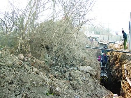 14日下午兩點半,仍有人在現場施工。 殷亞楠 攝 □記者 殷亞楠 14日,市民舉報漿水泉路南頭、旅游路南側有100多平方米的綠化帶被人毀壞。園林部門工作人員介紹說,破壞綠化帶的施工單位此前沒辦手續,園林部門已下了停工通知,可工作人員一走,對方照樣繼續施工,這讓園林人員頗感無奈。 14日,市民李先生開車經過旅游路時,看到漿水泉路旅游路交叉路口一處工地施工時把綠化帶毀壞了,那塊被挖了溝的綠化帶約三十米長,綠化植物都被刨到一邊。“旅游路是一條剛建好不久的路,兩邊綠化挺好,綠化帶這樣被破壞實在可惜!” 當天下午,記者來到漿水泉路旅游路交叉口南側的這一工地。只見幾個施工人員正在路邊綠化帶里一處約十米長、兩三米深的土溝里安裝管道,部分工人正在溝內焊接。他們說是供熱公司的,溝不是他們挖的,他們只是當天早上才過來安裝暖氣管道的。記者看到,溝邊有兩米多高的土堆,土堆里有許多綠化帶里的植物,東倒西歪、十分凌亂。記者目測被破壞的綠化帶約有三十米長,三四米寬。 園林部門工作人員張先生介紹,他們上周五在旅游路巡查時就發現這一工地在路邊設了施工圍擋,由于圍擋影響對綠地的養護,他們當時就告訴施工人員把擋住綠化帶的圍擋給拆了。“誰知前天下午我們巡查時,看到他們倒是拆了一段圍擋,可是已經把綠化帶挖開了溝。” 按照《濟南市綠化管理辦法》等相關規定,施工單位需要開挖綠化帶、移栽其中的植物時,必須由區綠化主管部門審核、報市綠化主管部門批準。張先生說,此處的施工單位從來沒向區、市園林部門進行過申請。12日他們當場給施工人員下了停工通知之后,也未見施工方主動來和園林部門接觸。“我們在現場看著,他們就停工,一走又照樣干”。 濟南市園林局綠化處相關負責人介紹,這家施工單位一個月之前曾來辦過手續,但當時他們帶的材料不全,工作人員要求其回去拿一份重要的規劃材料,材料全了手續肯定能辦。“可他們再沒來交材料,后來我們又接到舉報說他們已經先行挖了溝、破壞了近100平方米的綠化帶,昨天我們去現場責令其停工。由于我們沒有強制執法權,已經向市區執法部門進行了報告。”
