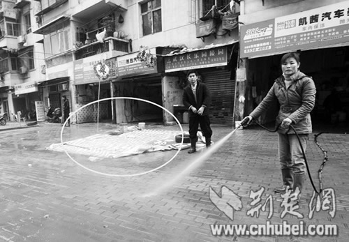漢口鬧市花壇一夜被抹平 疑為店家所為