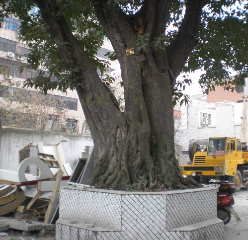記者在路經政府西街時,發現拆遷工地上有兩棵枝繁葉茂的大樹,遠遠望去還以為是一片森林。難道這兩棵樹也要“搬家”?帶著疑問記者走進拆遷現場。 拆遷現場 廢墟上百年黃桷樹 剛推開門就看見,兩棵高大的黃桷樹挺立在院子中央。仔細一看兩棵樹都掛上了規劃建設局制作的“牌照”。上面分別標著:樹名:黃桷樹(俗名榕樹),編號:NO.010,樹齡:130,不到5米的另外一棵樹也有120歲了。強壯的主干差不多要四個人才能完全抱攏,粗枝橫向伸出枝杈密集,把頭上的天空都遮蔽了,盤根錯節的顯現出歲月的痕跡。 負責人 古樹會原地保留 記者在現場看到,原武裝部隊辦公大樓已經拆除的差不多了,磚頭、混凝土、金屬、玻璃窗戶、石膏板雜亂堆放著。當問及是否會搬走兩棵百年黃桷樹時,拆遷負責肯定的回答,“按照建設局圖紙要求,這兩棵樹不會搬走,會原地保留。”但是,在新建30層高樓的時候可能會對兩棵古樹截枝瘦身,以免傷害其主體部分。 園林處 古樹是一張活名片 “一般地,像政府西街掛牌的古樹,對于它們的移栽工作要上報到市政府審批。”園林處負責人任科長告訴記者,“我們已經和建設局協商好了,為保護兩棵古樹名木不會移栽它們。”同時,這百年的黃桷樹,歷經風雨,見證遂寧的歷史,注視著我們幾代人的成長,承載著太多的情感。它們是一個景點,一個風水之地,是我市的活的名片。