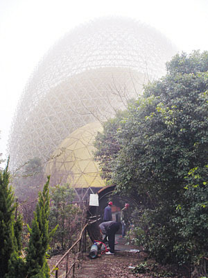 “巨蛋”外忙碌的拆除工人 網友發帖送行:“生于2000年,卒于2010年,鎮江全體小雞敬立” 昨天,外表依舊靚麗堂皇,內里卻已是千瘡百孔的“巨蛋”,在人們關注的目光中被拆除。鎮江網友發帖為“巨蛋”立碑送行:“生于2000年,卒于2010年,鎮江全體小雞敬立”。 或許是為了與“世紀巨蛋”出生時的萬千榮耀相匹配,昨天記者在拆除現場獲悉,經過嚴格的招投標程序后,中標單位在安監部門的嚴格全程監管下,采取了嚴密的保障措施后,才開始“拆除”施工。該工程被明確要求:做到安全第一,萬無一失,“不能再出新聞”。 中標單位沖著“巨蛋”名頭才投標 昨天鎮江有霧,上午8時許記者進入鎮江21世紀樂園。見有陌生人進來,馬上有施工人員上來攔阻,他們被要求確保“安全”,萬無一失,“不能讓巨蛋再出新聞”,當然也不能接受記者采訪。經反復交涉和溝通,拆除方相關負責人終于“打開天窗說亮話”。 拆除中標單位是江蘇龍海集團,該集團鎮江分公司副總經理吳珣告訴記者,公司以126萬中標,25天內拆完,然后將土地平整夯實后交給巨蛋所有方——鎮江京口區象山鎮政府。 22日是第一天進場,但主要是清除“巨蛋”四周的枯草雜樹,昨天才是第一天開拆!啊薜啊锩嬖撏档耐盗,該燒的燒了!眳谦懻f,公司起先并不打算投標,但沖著“神州第一蛋”的顯赫名聲他們才介入,最后在5家競標單位中勝出。