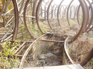 “巨蛋”破敗的“時光隧道”。 首拆“附屬蛋”,鐵板一踩就“通” 昨天首拆的是“巨蛋”的“附屬蛋”,“附屬蛋”比“巨蛋”小,立于“巨蛋”西側,由一條“時光隧道”進入,經“附屬蛋”才能進入“巨蛋”。整個拆除步驟是:附屬蛋——蛋黃——蛋殼。記者看到,附屬蛋上的部分被裝飾成“蛋黃”的黃色裝飾物,已經被工人們整塊卸下,堆于亂草叢中,鋪就“時光隧道”的大塊鋼化玻璃因為殘缺,一部分已被工人們撬起后堆置一邊,裸露出來的支撐玻璃的鐵軌骨梁銹損嚴重?创笥浾咭M入“附屬蛋”,馬上有工人大喊:“注意,當心骨梁塌下去!”隨后,在記者的采訪中,所到之處都會響起工人們此類警示的喊聲。 在吳珣的帶領下,記者小心翼翼地踩著骨梁進入附屬蛋,快到入口處時,一塊骨梁突然斷裂剝離,由于沒有一點預兆,記者的左腳突然失去了著力點,手中相機險些摔了出去!記者右手死命抓住扶手,右腳勾住骨梁后終于穩住,人沒有落下去。同行者隨手一扳,“附屬蛋”地面上的一個鐵板就被扳起。而就在吳珣向記者展示扳起的鐵板時,因所站位置沒有骨梁,他一腳下去,竟然將一塊1個多平方米的鐵板整體踩塌。吳珣感嘆地說:“花那么多錢建的‘巨蛋’,居然爛成這樣。” 網友發帖為“巨蛋”送行 本報獨家披露鎮江“世紀巨蛋” 節后要拆除的消息后,該消息在全國都引發關注。報道當天在鎮江各大網站上,有關“巨蛋”去留的帖子多達10多個,并有網站發專門帖子讓網友投票表決“巨蛋”的去留,目前還是熱帖。由于“巨蛋”自身存在巨大安全隱患而不得不拆除后,引發了鎮江網友的極大傷感:“巨蛋真要拆除了,可惜啦!”“巨蛋什么時候拆除啊,我想去送送它。”網友“fffonet”還為“巨蛋”在網上立了碑:“生于2000年,卒于2010年,鎮江全體小雞敬立! 得知“巨蛋”節后拆除的消息后,有多名鎮江市民特地趕到鎮江東郊的21世紀樂園和“巨蛋”合影。昨天,記者再次在網上看到網友類似留言,但記者從施工方獲悉,為了確保安全和避免發生意外,“無關人員將被拒絕進入施工現場”,其中就包括為“巨蛋”送行及和“巨蛋”合影留念者。 昨天上午11時,當記者步出21世紀樂園大門時,原本租用樂園廣場(緊鄰“巨蛋”)做練車場的一家駕校也已收拾設備準備撤離,一男子說:“用了幾年了,巨蛋拆了,我們也該撤了!痹诖箝T口,記者遇到看守“巨蛋”的一名王姓老者,他感慨地和記者談起“巨蛋”千禧年的輝煌,還有本報對“巨蛋”的大量報道。他見證了“巨蛋”的榮辱,“現在拆了,我們也該離開了!毖哉Z中充滿傷感和凄涼。 本報記者 萬凌云