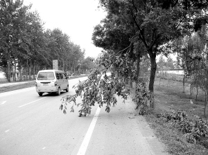 被折斷的樹枝耷拉在公路上 又到槐花飄香時節,茂密盛開的槐花把道路裝點得分外清新。然而,許多人私采亂采,將茂盛的槐樹糟蹋得面目全非,讓人十分心痛。這不,劉先生昨日打來電話,反映邢臨公路許多槐樹斷枝殘葉,都是采槐花惹得禍。 胳膊粗樹枝被折斷 劉先生說,他出差經過邢臨路,在威縣縣城至大葛寨段路北,栽種著許多槐樹,槐花繁茂,花香四溢。然而,他發現一路上有不少人用自制的竹竿、棍子等敲打路邊槐樹,采摘槐花。 記者昨日來到劉先生所說的路段,看到地面有許多散落的槐花、槐葉,有的已經枯萎變黃,被人們踩得面目全非?拷缆愤吶藗兩焓挚杉暗幕被ㄖ,基本已不見槐花蹤影。 距威縣縣城不到3公里的地方,有五六處粗大樹枝被折斷的痕跡。有的斷枝比成人胳膊還粗,耷拉到地面,兩三米長。在威縣縣城與大葛寨中間位置,也有兩三處樹枝被折斷,被折斷的樹枝上槐花被采得一干二凈。 采下的槐花做藥材 上午10時許,記者往回返時,看到三四名中年人圍著一棵槐樹拉扯較低的樹枝,將上面的槐花一一摘下。旁邊停著一輛三輪車,上面有兩個袋子,裝滿了槐花。走近一看,樹上還有一人,正將樹枝往下蹬,方便下邊的人采摘。 記者向他們詢問:“摘這么多槐花干什么?” “賣,做藥材! “沒人管?” “來人就走唄!” 路邊的槐花請你不要采 因為槐樹屢屢被破壞,許多老百姓反對私自采摘槐花。不過在采訪中,業有老百姓認為應該允許采摘!盎被ǹ梢猿,又有做藥材的功用。一路上有成千上萬棵樹,不采下來實在太浪費! 有關部門告訴記者,公路旁的樹木主要是用來遮蔽煙氣、防止污染,同時保護路基。一般情況下,樹木的修剪都由專業人士來進行,最好不要私采亂摘,破壞樹木。