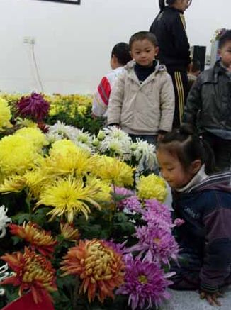 菊花展期間,吸引了不少社區(qū)居民前來觀看,實(shí)地感受了一回陶淵明“秋菊有佳色”的意境。很多人還帶著孩子一同前來,與孩子一起仔細(xì)觀賞,找出菊中的五大珍品——綠牡丹、帥旗、十丈株簾、綠衣紅裳、墨荷的身影。據(jù)說,其中的“墨荷”是世界上“最黑的菊花”,即便是最黑,人們能看到的也只是深紅色。除了以顏色稀有取勝的品種,散發(fā)著梨香、薄荷香的梨香菊和薄荷香等香味菊也蘊(yùn)含著趣味。在觀賞菊花的同時,孩子們也在寓教于樂中感受了生活中養(yǎng)菊花帶來的樂趣。