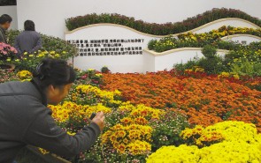 杭州首屆菊花藝術節于10月底在杭州植物園開幕,在250平方米的蕭山展區內,共擺設了塔菊、盤龍菊、懸崖菊、立菊等種類的菊花5000多盆。展區內的后墻壁設計了像錢塘潮一浪一浪的潮涌,上面種滿了菊花,象征蕭然大地孕育了“奔競不息、勇立潮頭”的蕭山精神;在展區的一側,擺放了一艘獨木舟,船內擺滿了各種各樣的菊花,十分漂亮。負責這次菊展的李女士說,這艘獨木舟象征了蕭山有8000年歷史的跨湖橋遺址。 記者了解到,今年江寺公園內的菊花展,市政園林處共擺設了10000盆各個種類的菊花,園林所在公園內六處位置用菊花搭出了不同風格的造型。 本屆菊花展將持續到本月下旬,活動結束后,本報將與園林所共同推出“菊花免費贈市民”活動,請市民關注后續報道。