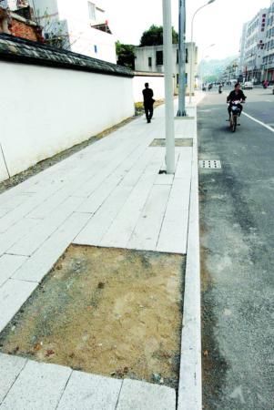 日前,本報(bào)曾報(bào)道金山榕城廣場(chǎng)的金榕南路(榕城廣場(chǎng)至金祥路段),這條建好10年的市政主干道兩側(cè)沒有一棵行道樹,連樹池也沒有,人行道上鋪上了透水磚。昨天,記者再次來到金榕南路,看到行道樹依然沒有,路邊的綠化帶則堆上了建筑、生活垃圾。