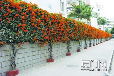 炮仗花把前埔南區小學圍墻裝扮得分外靚麗。