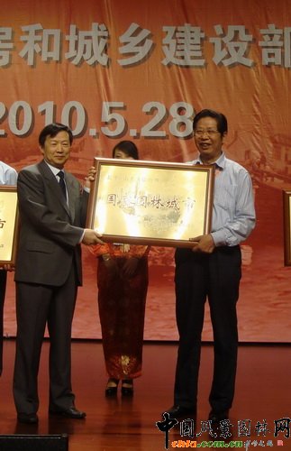 中國風(fēng)景園林網(wǎng) 5月28日,2009年國家園林城市、縣城和城鎮(zhèn)授牌儀式在江蘇蘇州舉行。國家住房和城鄉(xiāng)建設(shè)部為臨沂等47個“國家園林城市”、平邑縣等30個“國家園林縣城”和“國家園林城鎮(zhèn)”進(jìn)行授牌。市委常委、市政府黨組副書記林祥余帶隊參加了授牌儀式。