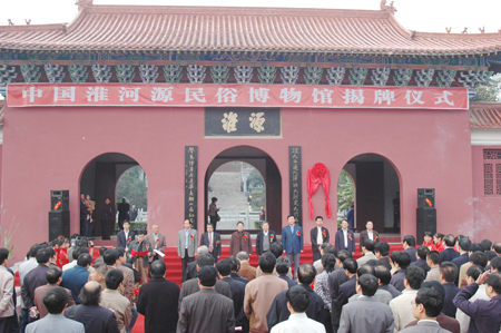 為更好地挖掘、整理、保護和弘揚淮河源民俗文化,經中國民間文藝家協會批準,并在其大力的支持下,規劃建設"中國淮河源民俗博物館。"該館占地五十二畝,先后投資四百七十萬元,修建了古典式南、北大門、禹王殿、民俗博物館及廣場、淮池、淮井、淮源碑廊、"走讀淮河"等工程,集中展示了淮河源源遠流長的歷史文化及淳樸厚重的民風民俗。二零零七年又投資三百多萬元,修建了淮河三級攔河壩、南門外廣場,并對博物館進行了全面整修、充實和提高。止目前,館藏民俗實物達五千余件,成為在河南、乃至全國有一定影響力的民俗博物館。