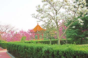 四是突出園林綠化的生態環保功能。在綠化工作中,注重物種的多樣化,堅持喬、灌、草、花結合,溫、寒帶物種結合,突出高樹量,多種植大樹,同時加強對自然水面的保護與拓展,切實增強了綠化對城市生態環境的調節與保護。