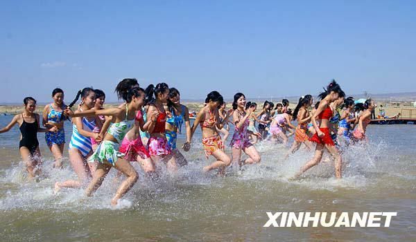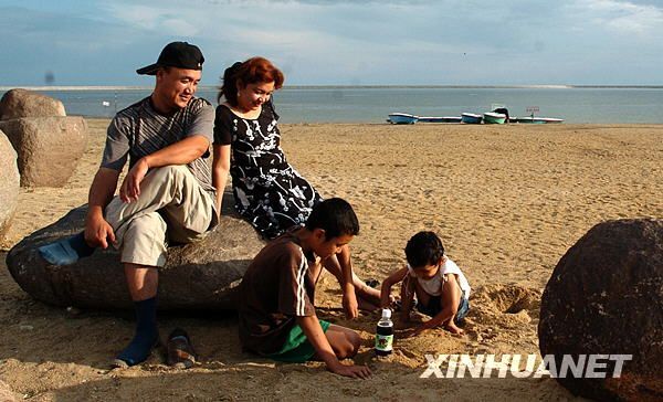 游客在克拉瑪依阿依庫勒景區(qū)休閑娛樂(2005年8月攝)。新華社發(fā)