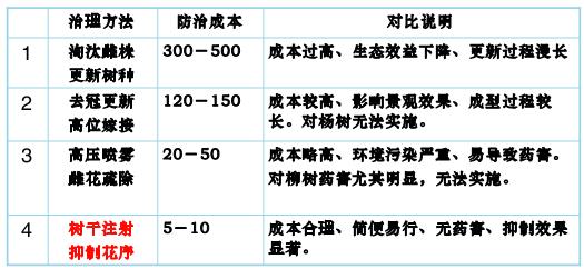 4. 注射楊柳飛絮抑制劑--抑花一號(hào),抑制楊柳樹花序形成。