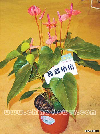 西部蘭花生態(tài)園推出的粉色中花型紅掌新品種‘西部俏俏’。
