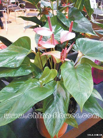 荷蘭瑞恩公司推出的紅掌盆花新品種‘a(chǎn)dioskiss’。