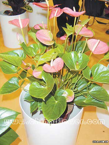 荷蘭安祖公司推出的紅掌盆花新品種‘花臉’。