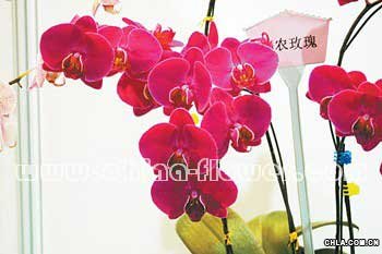 南京湯泉蘭廬展示的蝴蝶蘭熱點(diǎn)品種‘紅龍’。