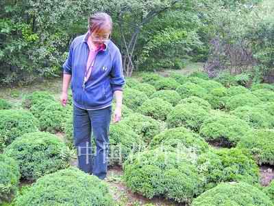 圖為‘迷你球檜’培育人之一唐宇丹研究員在育種基地查看植株長勢,圖中‘迷你球檜’為22年生苗。本報記者駱會欣攝/文