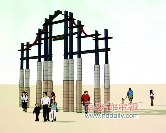 公園的南門將仿照澳門大三巴牌坊的造型,做一個“山寨版大三巴”,這個“山寨版大三巴”寬和高各9米多,造型簡潔,將采用富有現(xiàn)代感的材料建造,讓人一進門就能感受到公園的澳門氣息。