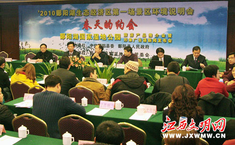 隨著鄱陽湖生態(tài)經濟區(qū)上升為國家戰(zhàn)略,《鄱陽湖生態(tài)經濟區(qū)規(guī)劃》正式出臺。江西省鄱陽縣搶抓先機,靠借鄱陽湖得天獨厚的地理優(yōu)勢,率先登場。1月16日下午,鄱陽縣以圍繞“春天的約會”全力開發(fā)旅游業(yè)為主題,在南昌市舉行了鄱陽湖國家濕地公園旅游產品推介會。
