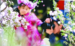 記者在公園看到,園內的山桃、迎春及幾萬株盆花已陸續開放。除了觀賞櫻花,在公園東北大堤景區,還有千余株不同品種的海棠,白色的淡素雅潔,粉色的宛如緋云。