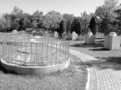 距離園區主要景觀“奧!钡拇a頭不遠,一個個近似半球形的裝置沿石徑排列著,拖住了記者的腳步。這就是利用自然光節電的光導照明系統。