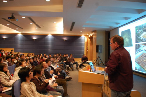 本次景觀分論壇體現了兩大特色。首先,全場英文交流。無論是嘉賓講座、主持還是學生提問都使用英語而不是中文;其次,充分體現了論壇的交流性,很多在校留學生和外校如林業大學的同學都聞訊趕來參加了論壇,而其它專業如建筑、規劃的同學參加者也不在少數。論壇體現了中西文化交流和校際學術交流的優勢,達到了改革開放三十年期間老一輩景觀設計師與新生力量交流的目的。同學們普遍反映本次活動非常成功,并希望今后有更多類似的交流機會和活動。