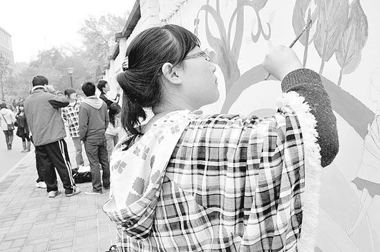據介紹,繪制校園文化墻是北京林業大學獨具特色的校園文化活動項目,今年已經舉辦第六屆。本屆的主題是“倡導低碳生活,傳承綠色文化”,由“垃圾·資源!”、“Locals@Campus”、“世博與生活”、“攜手綠色聯盟”4個特色板塊組成。主辦方試圖以這種方式建設校園文化,倡導低碳生活,鼓勵創造思維,樹立環保意識。