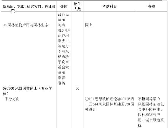 2011年北京林業(yè)大學(xué)園林相關(guān)專業(yè)研究生招生目錄