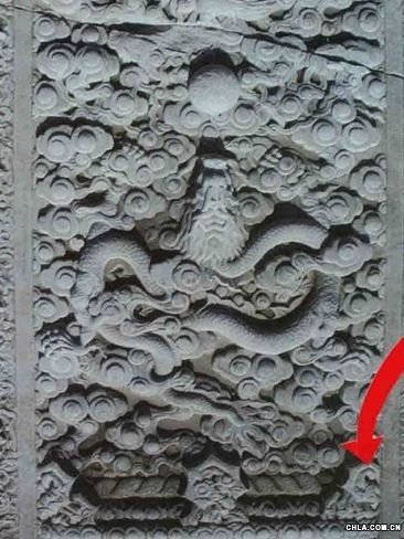 丹陛石右下角的小壁虎(紅色箭頭所指處,看上去如同一個小蟲子)