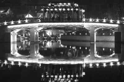 繼續前行,一股幽香襲來,河畔原來蔓延著層層疊疊的青柳與夾桃。經過平江橋,有水上“明珠”之稱的白鷺洲公園,把一幅五彩斑斕的夜景圖陳列在我們的眼前。這是明代開國功臣中山王徐達的私家花園,得名于詩仙李白的詩“三山半落青天外,二水中分白鷺洲”。這里也是一個以橋為特色的園林,園內宛如襟帶的小橋有15座,座座典雅玲瓏。什么獨孔橋、三孔橋、七孔橋……短的如玉簾,長的若玉帶,淋漓盡致地點綴著幽麗的園子。一座紅黃相間的牌坊橫跨水面,上書“風雅白鷺”。據傳南朝時這里已是佳麗如云,及至明清,成為秦淮佳麗學習技藝的場所。