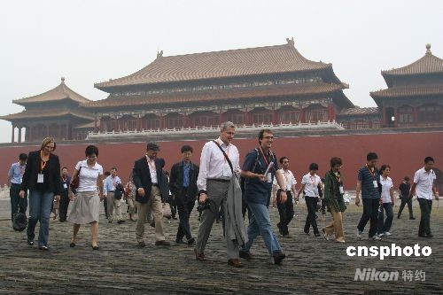 7月2日,隨著奧運的臨近和旅游旺季的到來,北京各旅游景點己做好接待來自世界各國賓客的準備工作。圖為整修一新的北京故官博物院迎接來自世界各國的參觀者。 中新社發 燕平 攝