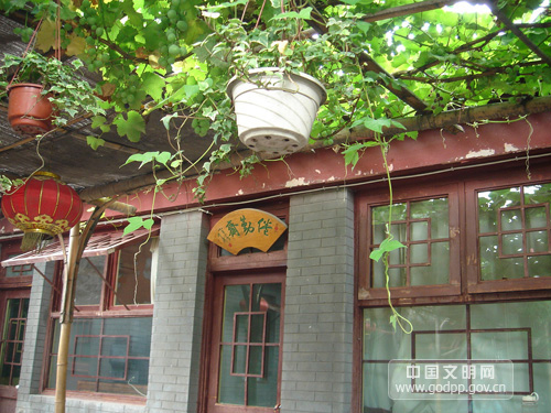 四合院里常種的花卉有菊花、牡丹、芍藥、藤蘿、茉莉、黃花、夾桃、榆梅,背蔭處還可栽玉簪花。除去種在地上的花卉外,還有很多盆栽,可以任意搬動(dòng)擺放,點(diǎn)綴庭院。四合院這一片小小天地,一年之中春、夏、秋三季花木扶疏,清香四溢,沁人心脾,情深味濃。