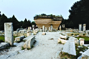 圓明園大水法遺址,流水的石槽也是極盡雕工之能事。
