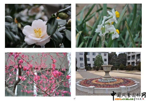 中國風景園林網訊 在日本隨著一年中最寒冷的2月漸漸遠去,寒冷的冬風漸漸變成溫暖的春風,吹向了千葉大學園藝學部校園的每一個角落。 最近一周,學校的風景變得不再那么單調,初春的氣息帶給人帶來了春天生機勃勃的景象。校園梅花的盛開了,零星地奏響著校園春天的序曲,紅色的花蕾綻放仿佛剛剛從睡夢中醒來,懶洋洋的花朵精致而動人。在經歷寒冬凄涼后的大自然重新在千葉大學園藝學部師生面前展現了它的魅力。圖書館前那最讓人津津樂道的茶花,星星點點的分布在樹梢上,就像一個個綠綠的小斑點點綴在枝頭,令人賞心悅目。步入圖書館前的時候,人們都忍不住停下腳步,駐足觀賞,從中感受它的純潔和芳香。A棟研究樓前的法式庭院花壇中各色姿態的草本花卉同樣吸引著師生的目光,用它們自己的方式演繹著初春的故事。據悉,今年日本東京地區的櫻花盛開時期將在3月底,想必那個時候,整個校園將成為櫻花的海洋。