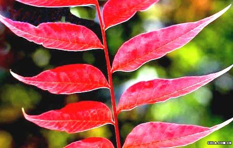 黃連木在設計時,要對其生態學特性做充分考慮,做到適地適樹。要點是將其種植在全光照的條件下才能充分體現出色彩美,光照越強,葉片色彩越鮮艷。一旦處于光照不足的半陰或全陰的狀態下,則其色彩表現不理想,從而失去彩葉效果。