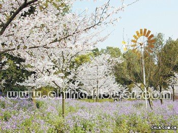 ▲由于二月蘭與櫻花的盛花期在同一時期,為了配合櫻花節,武漢東湖櫻花園在園內種植大片二月蘭。櫻花盛開時節,一片紫藍色的二月蘭花海襯托著絢爛的櫻花,更添浪漫氛圍。圖為武漢東湖櫻花園內與櫻花相映襯的二月蘭花海景觀。 本組圖片由張艷芳攝影