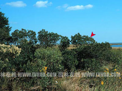 蠟楊梅不論是叢植、片植還是孤植都可以達到良好的景觀效果。在小庭院中小苗孤植也不失其清秀可人的風姿,別有一番風味(如圖10、圖11)。 三、在我國的發展前景 蠟楊梅樹葉亮綠,觀賞性高,其株形可塑性強,景觀效果變化多樣,病蟲害少,具有低維護的優點。作為一個園林苗木新品種,蠟楊梅在園林運用中具有很大的利用空間。 蠟楊梅不僅能在城市園林綠化中發揮她美化環境的作用,更值得關注的是她在鹽堿地綠化中的特殊表現。因蠟楊梅適應性強,對土壤要求不高,耐鹽堿、耐旱、耐水濕的特點,適應沿海地區和沼澤地,耐海水噴霧和短期海水浸泡,使其毫無疑問成為鹽堿地綠化及水土保持領域的寵兒。在上虞市世紀陽光園林綠化工程有限公司海涂基地的鹽堿土壤上,蠟楊梅正展示著她優越的耐鹽堿性,生長旺盛,綠化效果表現突出。 同時蠟楊梅又具有固氮作用,因此在美化鹽堿地的同時又可改良鹽堿地土壤,是鹽堿地的先鋒樹種之一。 因此,該樹種是城市園林綠化、沿海地區綠化、鹽堿地綠化、特別是沿海防風林建設中不可多的優良樹種。 四、總結 蠟楊梅不僅能運用在公園、庭院、道路等各園林綠化項目中,并且能運用在鹽堿地、沿海沼澤地等惡劣的環境起到綠化美化及改良作用,使用范圍廣。