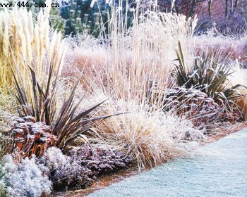 ▲棕色讓人有生命正漫漫消逝的感覺。盡管棕色不是能夠呈現絢麗景觀的顏色,經常作為配色出現。但是,在冬季尤其是下霜之后,棕色上又會增添銀色和灰色,進而使植物原本的顏色變得模糊不清,營造出別有情趣的景致。圖為下霜之后棕色的植被呈現奇妙的景觀效果。
