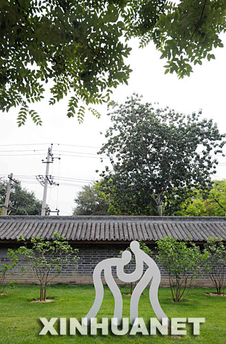 圖為7月20日拍攝的天壇公園西墻的奧運(yùn)主題雕塑綠化。新華社記者陶希夷攝