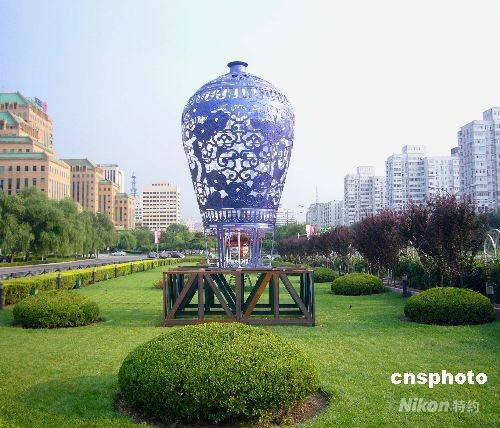 五洲連五環(huán) ![]() 7月20日,一個(gè)高4米左右的“青花瓷”瓶奧運(yùn)花壇在北京長安街亮相,其清新典雅的“芳姿”成為一道別致風(fēng)景。