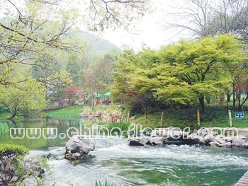杭州太子灣公園造園時依山就勢,挖池筑坡,使其地形蜿蜒起伏、錯落有致,力求體現(xiàn)鄉(xiāng)情野趣。為了更好地營造立體空間,太子灣公園利用天然的青山做背景,下面潺潺流水,錯落地配置各種植物,形成絕妙的景觀帶,岸上青草茵茵,楓楊偉岸,是鋪墊和支撐空間的亮點(diǎn);岸緣配置大量鳶尾,開花時節(jié)其斑斕色彩更是將水岸景觀渲染到極致。